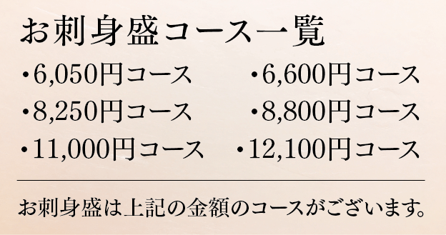 お刺身盛はご予算に合わせ6,050円(税込)から承ります。ご相談下さい。